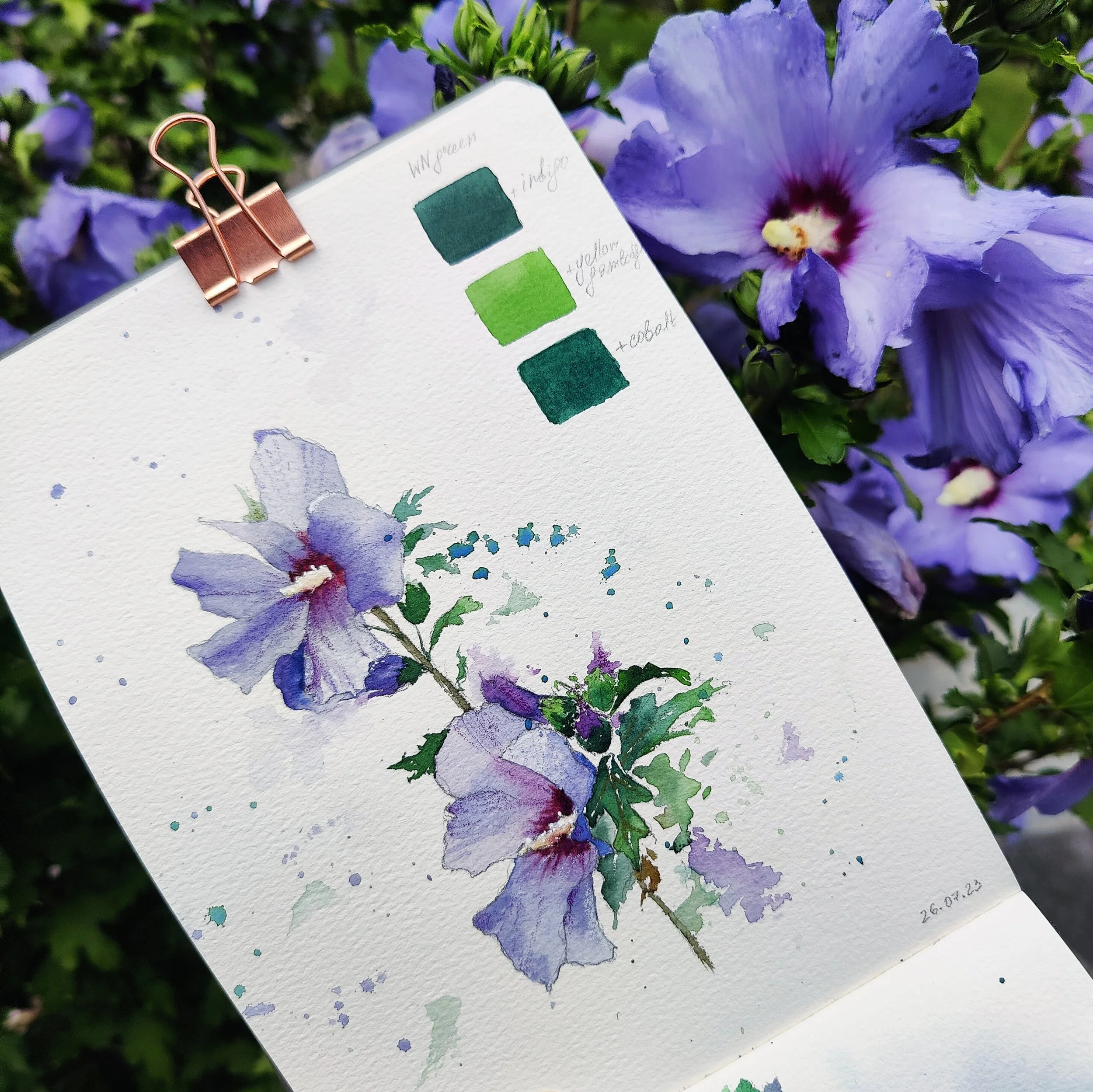 To illustrate these tips, here are some pictures of a hibiscus flower that I painted a couple of days ago in a serene cemetery setting. (I must admit, I still feel a bit shy when people watch me paint, so a cemetery was a perfect location ;))
